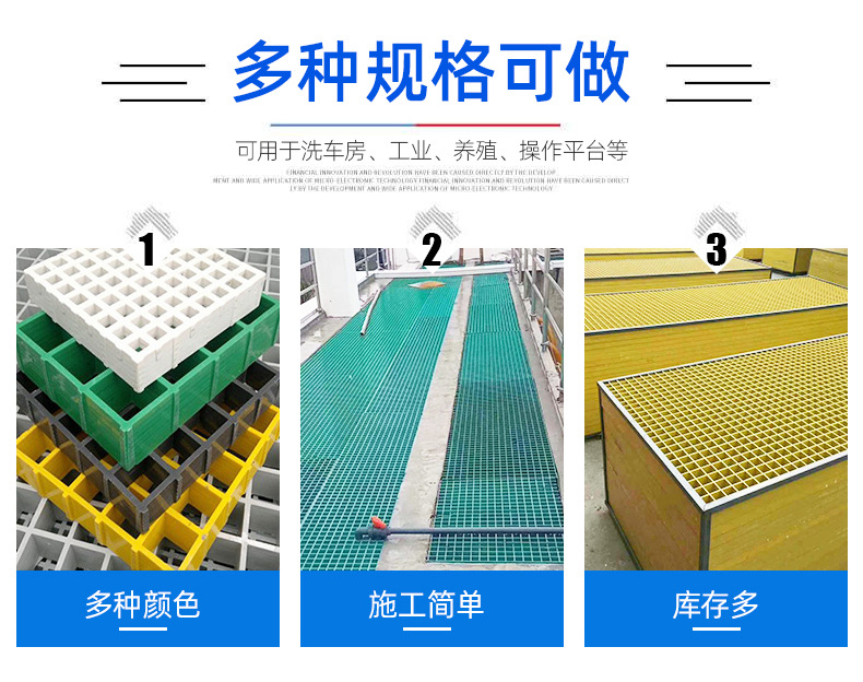 山東環通復合材料有限公司是從事玻璃鋼格柵的生產廠家,公司位于山東濰坊安丘市,玻璃鋼格柵主要分為25*25,38*38,42*42.顏色分為:綠色,紅色,灰色,黃色,藍色等。公司生產玻璃鋼產品為:公司生產玻璃鋼產品為:玻璃鋼儲罐,玻璃鋼管道,玻璃鋼夾砂管,玻璃鋼防腐,玻璃鋼冷卻塔,玻璃鋼化糞池,玻璃鋼保溫罩等。